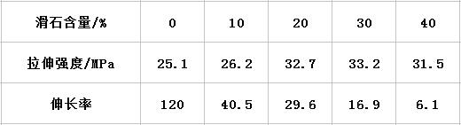 表一滑石含量對聚丙烯拉伸強(qiáng)度、彎曲性能的影響