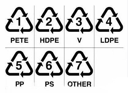 每個(gè)塑料的器皿,在底部都有一個(gè)數(shù)字 ( 它是一個(gè)帶箭頭的三角型 ,三角型里面有一個(gè)數(shù)字 ),那么,你都了解每個(gè)數(shù)字的含義嗎?