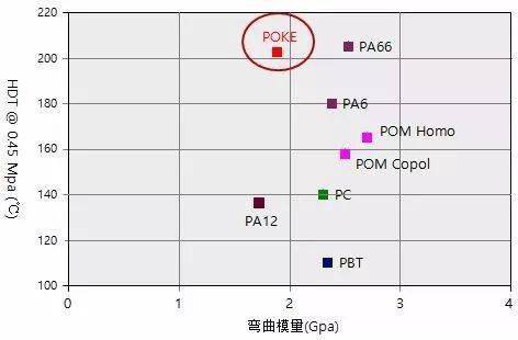 POKE是改性聚酮,耐磨性是POM的10倍以上,吸濕性比PPA還低,長(zhǎng)期使用溫度高,熱變形溫度高,耐酸耐堿性好!